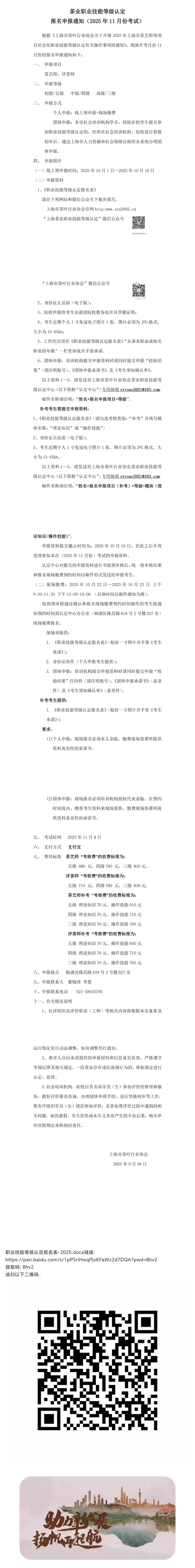 茶业职业技能等级认定报名申报通知(2025年11月份考试)